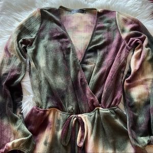 Tie Dye Surplice Romper Long Sleeve NWT