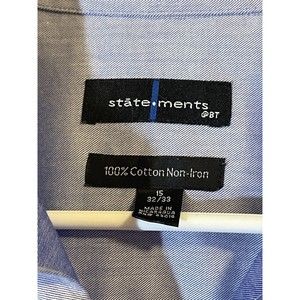 STATEMENTS Men’s Button Down Shirt Size 15 32/33 Long Sleeve Blue