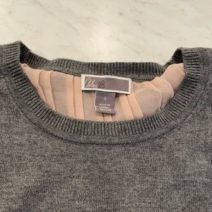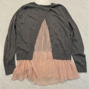 Chelsea28 Grey Sweater with Sheer Pink Accordion Hem Split Back Size Small