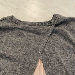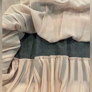 Chelsea28 from Nordstrom, grey sweater with sheer pink accordion hem and back. Split back and high quality. Only worn a handful of times, in excellent condition, no issues. Very soft! A flowy cute ballet inspired sweater.