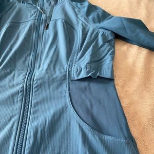 Worn only 3 times, this jacket is reversible and has thumbholes. Drawstring on hood can be switched to either side. Only "issue" when reversed is the tiny piece of the tag that couldn't be removed.