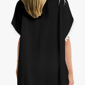PINKMSTYLE Clothing Co. pom poms Cover Up swimsuit super lightweight, one size fits most, white tassels, colors black and white, great for summer ☀️