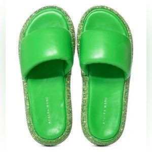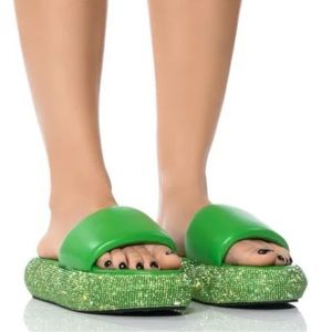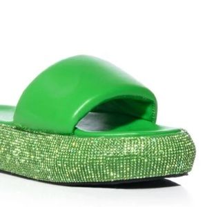 AZALEA WANG SUNNY DAYS RHINESTONE EMBELLISHED SANDAL IN GREEN. Like new.