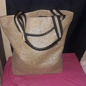 NWOT Victoria Secret Glitter Gold Tote size 17" by 17"