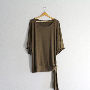 Tommy Bahama ladies top. Pull over, wide dolman sleeves with cute slit at the bottom seam, hemline band with side tied detail.
