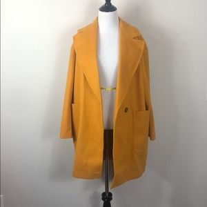 Topshop Carly coat in mustard. Soft and slouchy, this chilly-day coat is styled with oversized pockets for functional charm.