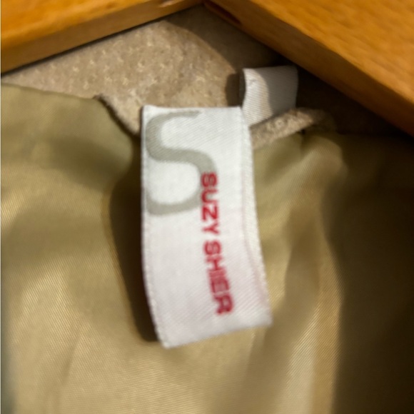 What a rare Suzy Shier piece! 100% Pig Leather 😍 Excellent condition Light tan I’m size 14 and this fits comfortably, but without being able to button up, as an idea of fit