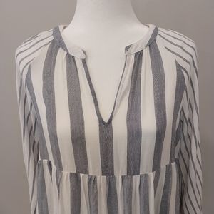 Staccato Gray and White peplum long sleeve v neck Blouse Size Small 100% Rayon