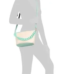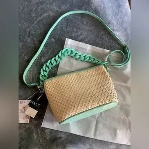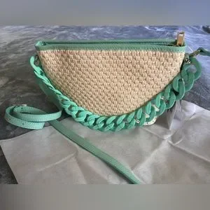 STELLA BIANCA Aqua Raffia Chain Crossbody Bag With Leather Trim Made In …