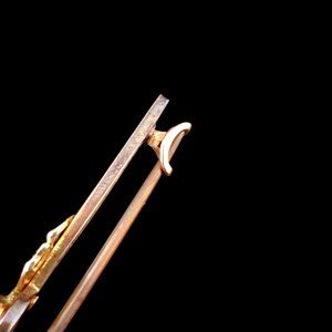 Measurements: 2 1/16" long, 8.2mm wide, chain 2 1/4" long, English pin 15mm long