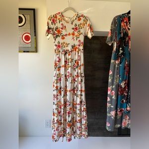 The white floral has the tag “orange creek Los Angeles” and the gray floral has the tag “Mika rose,” but I bought all of the dresses from JessaKae.com