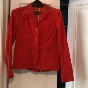 Orange corduroy blazer is surely a stand out. Front patch pockets, back vent.