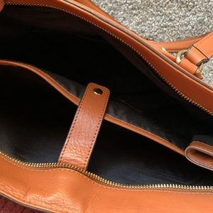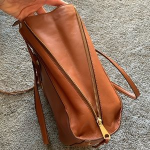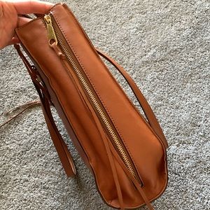 Rebecca Minkoff tote | laptop bag in good used condition. Expandable on sides. The interior has a padded laptop compartment with snap closure. Many pockets on the inside and two on the outside. Replacement fringes included. Genuine leather. It shows some wear around the corners, please see pictures. Structurally in excellent shape.