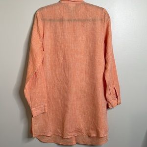 J. Jill 100% Linen Coral Orange Long Sleeve Button Up High Slit Tunic Medium