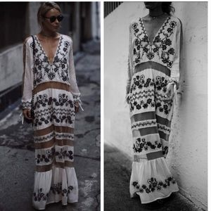 For Love and Lemons UNICORN rare piece BNWT cream & black mesh embroidered maxi dress. Size XS. Brand new with tags. Beautiful one-of-a-kind, detailed embroidered maxi dress.