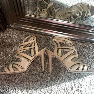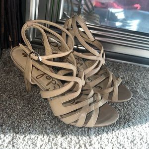 Sam Edelman nude tan leather strappy high heel sandals 4.5” heel height