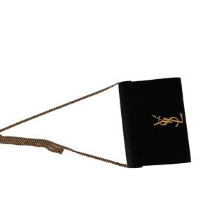 Saint Laurent wallet bag in textured leather. Could be worn as a clutch or a shoulder bag.