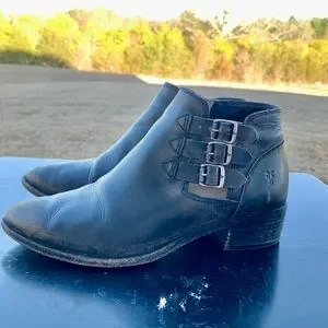 Adorable Bootie! Frye Belted Bootie, Distressed Black Leather, 7