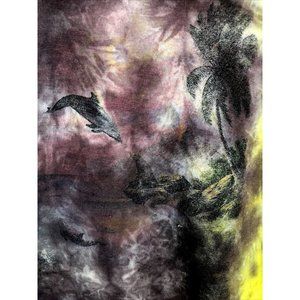 Tie-Dyed Shirt Unisex Blues Yellow Blacks Dolphin Theme Adult Size 2X Large