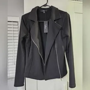 Lulus Sophisticated Cool Black Knit Moto Jacket