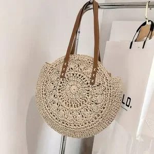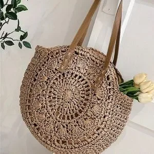 Oversized Straw Circular Lined Tote Shoulder Beach Bag