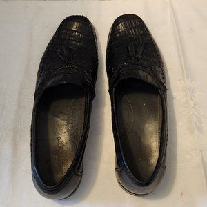 Size 10.5 Brass Boot genuine black Caiman Alligator tassel loafer dress shoes. Great condition-most of the wear is on the leather outer sole. Fantastic quality!