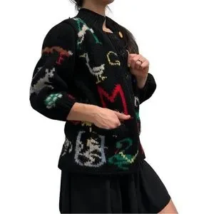 Vtg Moussie Susan Bristol Sweater Cardigan Wool ABCs Back To School Novelty S