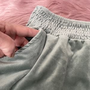 EUC is a two piece set. This contains a pair of green velour elastic waist shorts by Alya. Super soft material and has side pockets.