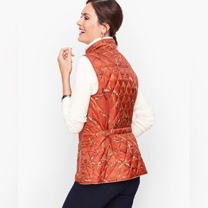 Figure-flattering quilted vest. With front seam detailing and an elasticized back waistband. In a timelessly chic equestrian design.