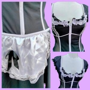 Vintage French maid costume. I'm labeling this outfit a costume but I'm pretty sure there's a lot of ppl out there who'd say this is lingerie. I say it's both. I feel it provides enough coverage to be worn out in public on Halloween night, while at the same time revealing just enough to get their thoughts so dirty they need a maid to clean them up.