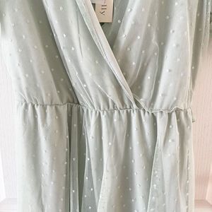 Allison & Kelly NWT Junior XS Pastel Green Ruffled Pokadot Dress with Ruffle Tri