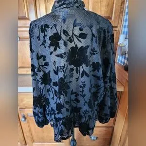 Express Black Velvet Floral Long Sleeve Blouse Size XL NWT