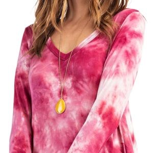 Long sleeves, V-neck, Tie Dye Print, Pockets.