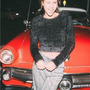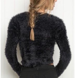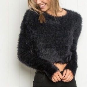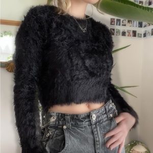 Brandy Melville Black Furry Fuzzy Crop Sweater