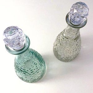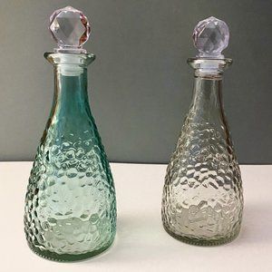 Find all sorts of uses for decorative bottles that come with a glass stopper. These bottles have a pretty hammered design made into the glass that will add class to any setting.
