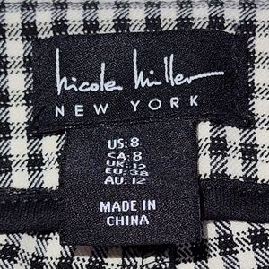 Nicole Miller Womens Pants Black And White Plaid High Waisted Split Leg Size 8