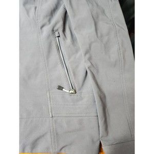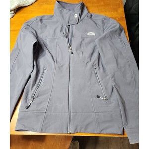 Women's North face jacket, size small. Jacket has no hood but does have collar with snaps to keep neck warm. Color is gray.