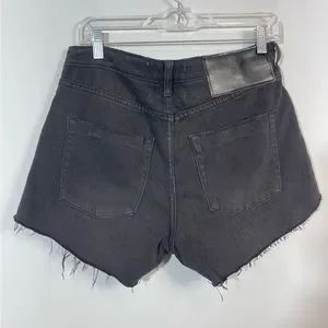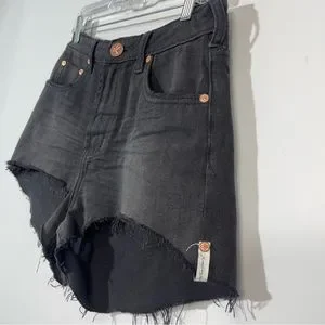 ONE TEASPOON TRUCKERS MID WAIST RELAXED DENIM JEAN SHORTS IN PURE BLACK SIZE 27