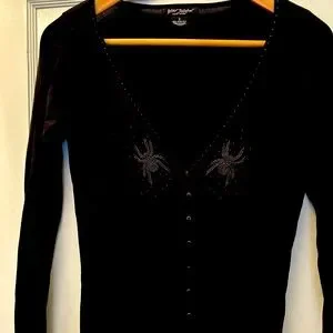 Betsey Johnson Y2K original black cardigan with Spider Beaded detail sz S, Black