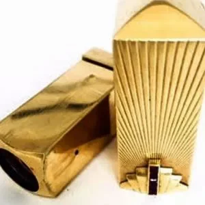 14K Tiffany & Co. Lipstick Art Deco Yellow Gold 💄 Jewelry Case Adorned with 5 square Red Rubies +/-.25ct.