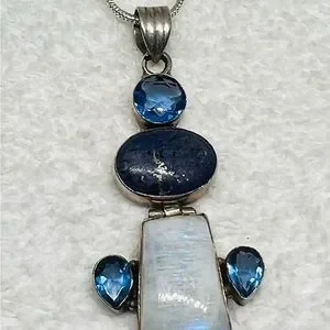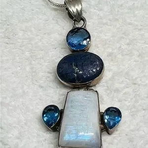 This is a stunning large moonstone pendant with blue agate and crystal accents.