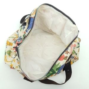 LeSportSac Small Duffle Bag Wild Animal Print Lion Giraffe Elephant Cream