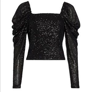 NWT Ramy Brook Black Skye Sequin Puff Sleeve Top Size 2