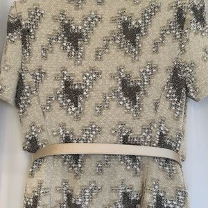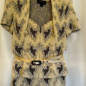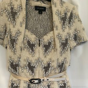 ST. JOHN “ STUNNING “ TWO PIECE EVENING WEAR Size 4 WITH MATCHING BELT .JACKET MEASURES ARMPIT to ARMPIT 16 in. SKIRT MEASURES WAIST 14 in LENGTH 17 in