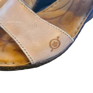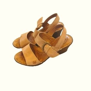Born Boulder Leather Cork Wedge Sandal Tan Size 9 women's Shoe