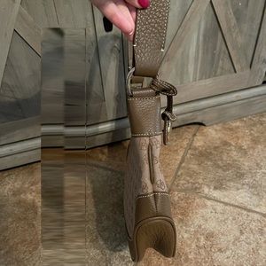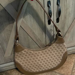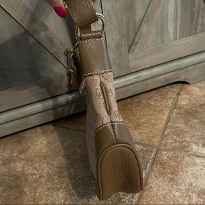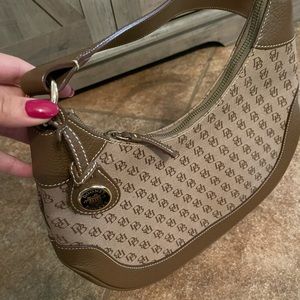 Dooney & Bourke Crescent Pebbled Leather Signature Logo Brown Shoulder Bag