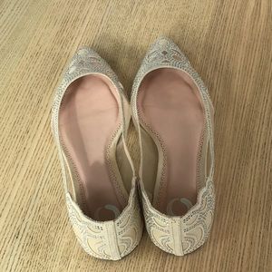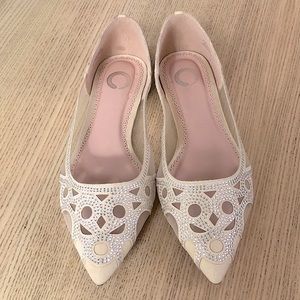 Journee Collection Batavia flat, size 9. Color is cream with silver rhinestones. Gorgeous shoes in EUC, no stains or signs of wear. Perfect for a special occasion or date night!! Bundle for an even better deal!