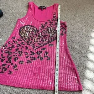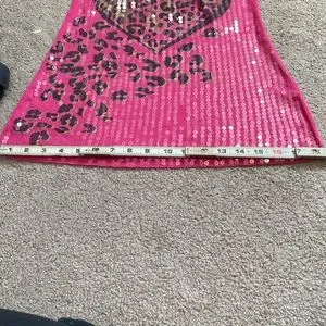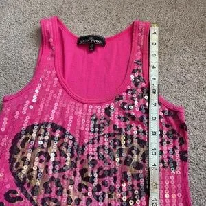 Almost famous sequin long tank top fuchsia pink black gold size M very nice