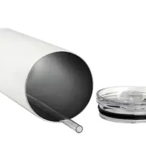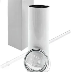 Tumbler includes lid and straw.