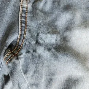 Pictures show wear on the buttons and a small snag, but it's not very noticeable